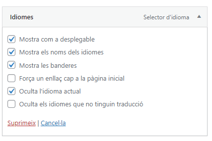 Després, has de tenir disponible l’opció “Selector d’Idiomes” que es fa com hem vist abans.