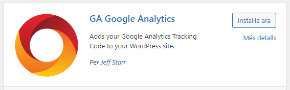 A l’apartat “Settings”, posar, a GA Tracking ID el número de ID que ens ha assignat Google Analytics.
