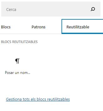 A la part de l’esquerra se t’obra una columna. Dóna’t compte que ara hi figura l’opció: Reutilitzable