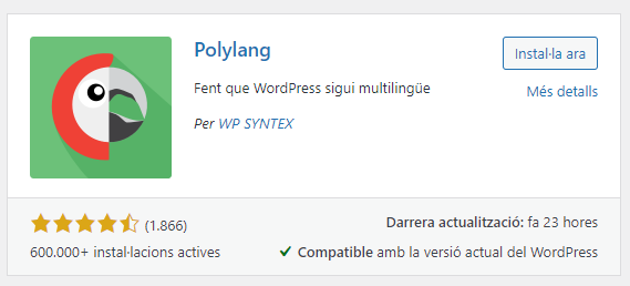 El següent pas a seguir seria el d’afegir les extensions dels idiomes